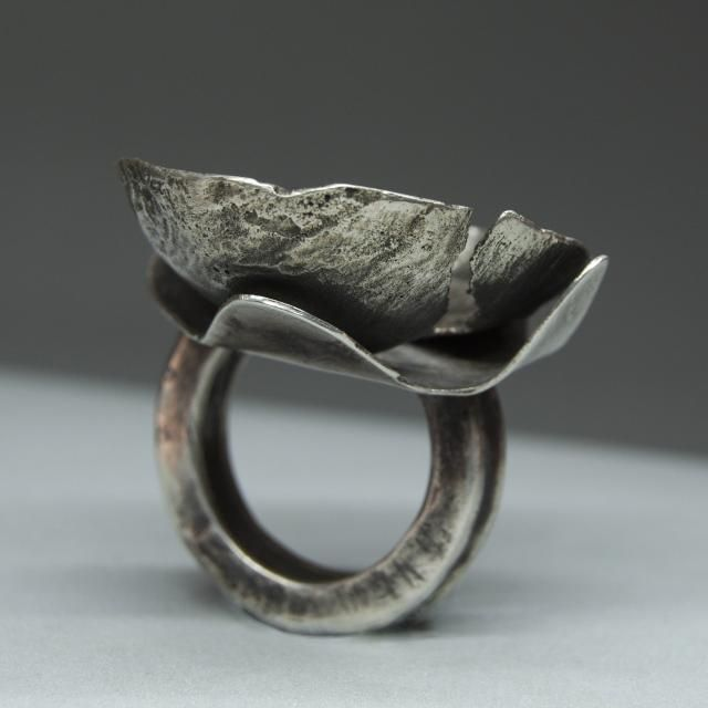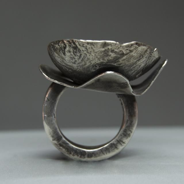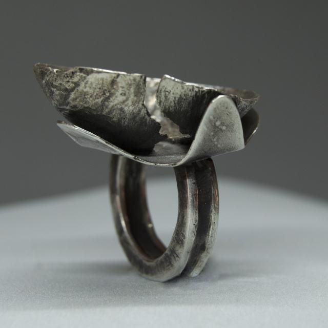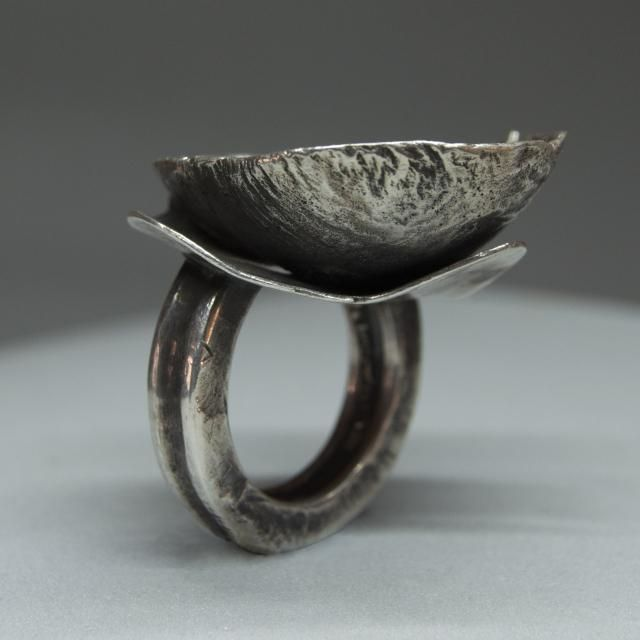 Anillo de plata elaborado artesanalmente. Es una pieza única. La textura del anillo evoca la superficie de luna.
